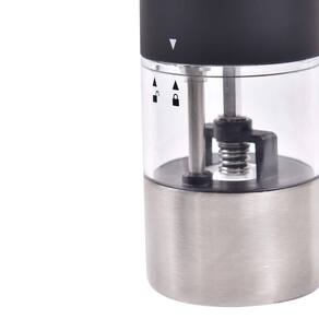 Moedor para Sal e Pimenta Elétrico 70ml Maxwell & Williams Preto Experimente a próxima geração de eletrodomésticos de cozinha com nossos moedores automáticos de sal e pimenta Cosmopolitan. O mecanismo motorizado de moagem em cerâmica permite que você controle a moagem dos seus temperos com o apertar de um botão. Movido à pilha. Código: 4080331585Marca: Maxwell & WilliamsMaterial: Aço inox e lâmina em cerâmicaCapacidade: 70mlCor: PretoPeso: 0,25kgDimensões: 22,5cm x 6,2cm x 6,2cm AxLxP Garantia: 3 Meses