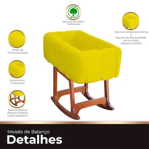 Apresentamos o Moisés de Balanço, uma escolha de alto padrão para o conforto do seu recém-nascido. Feito inteiramente de espuma de alta qualidade, ele dispensa colchão, proporcionando um conforto superior com sua espuma de alta densidade. A base de balanço, feita de madeira envernizada com feltro de proteção, garante estabilidade sem marcar o piso. O acabamento externo com cordinha costurada dentro da espuma adiciona um toque de sofisticação. Perfeito para acolher seu bebê com e estilo.
