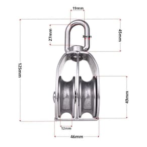Moitão giratório duplo em aço inox 50mm o moitão giratório duplo em aço inox é um equipamento utilizado na área da construção civil, especialmente em obras que envolvem a suspensão de cargas pesadas. Ele é composto por duas polias de aço inoxidável que giram em torno de um eixo comum, permitindo que as cordas ou cabos passem por elas com facilidade. Uma das principais vantagens do moitão giratório é a sua capacidade de suportar cargas pesadas com segurança, graças ao seu design robusto e resistente. Além disso, a sua capacidade de girar em torno de um eixo comum permite que as cargas sejam movidas com maior facilidade e eficiência, o que pode resultar em economia de tempo e dinheiro durante a execução da obra. Outra característica importante do moitão giratório duplo em aço inox é a sua durabilidade e resistência à corrosão, o que o torna ideal para uso em ambientes externos e em contato com água ou outros líquidos. Por fim, é importante destacar a importância de utilizar um equipamento de qualidade e certificado, a fim de garantir a segurança da obra e dos profissionais envolvidos. Infomações adicionais nosso código: 5164 material: aço inoxidável 304 durável, forte, confiável, à prova d'água, antiferrugem, anti-alta temperatura, resistência á corrosão. rolamento de carga: 400 kg, adequado para corda de 10 mm diâmetro do corredor: 50 mm, para informações detalhadas de tamanho, consulte as imagens projetado para pendurar coisas pesadas para aliviar a carga. para uso com corda em aplicações internas e externas com anel de olho giratório pendurado na parte superior.
