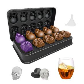 Molde de caveira de gelo de 10 furos com funil -------------------------------------------- Especificação: Material: silicone alimentar\ nCor: preto\ nEstilo: Preto\ nAplicação: Para fazer gelo, geleia, doces, chocolate\ nCapacidade: 10 unidades/Tamanho: 18 cm/7,08 pol* 10,5 cm/4,13 pol* 2,3 cm/0,9 pol. Peso: 160 g\ nO produto inclui: gelo Mm Molde * 1, Funil * 1 ---------------------------------------------------- 1. O design exclusivo do crânio faz com que suas bebidas se destaquem, ideal para bares, festas, restaurantes ou festivais.\ nUso flexível: moldes de gelo de silicone são um material de silicone de alta qualidade, durável e flexível, a bandeja de gelo de silicone não quebra o gelo como outras bandejas de gelo. O plástico macio pode facilmente desdobrar o balde de caveira perfeito, os detalhes são lindos, fazem com que o molde de gelo se desdobre rapidamente e facilmente. 3. Design à prova de derramamento: depois de selar o molde do crânio de gelo, há um pequeno orifício na parte superior da tampa, para que você possa facilmente introduzir ruído usando o funil incluído na embalagem, evitando derramamentos. O design cuidadoso faz com que você se sinta mais confortável. 4. Amplamente utilizado: o molde de cubo de gelo 3D com caveira não é apenas um excelente molde para cubos de gelo em barra, molde para cubos de gelo de coquetel, molde para cubos de gelo de uísque, molde de limão. Também é adequado para mousse, chocolate, sorvete, geleias, ótimo para bares, praias, festas, restaurantes, presentes de Natal e eventos de festivais. 5. Fácil de desenformar: a bandeja de silicone 3D é diferente dos moldes tradicionais de plástico rígido. O material de silicone maleável permite você pode ejetar de forma rápida e fácil os cubos de gelo para dentro, sem vários solavancos e dobras, dobre apenas levemente as bordas. ---------------------------------------------------------------- Nota: 1. Existem pequenos botões cilíndricos nos moldes de gelo. Pressione-os com firmeza para melhorar o gelo. 2. Evitar arranhões com instrumentos afiados pode prolongar a vida útil do produto. 3. O tamanho é medido manualmente, pode haver um erro de cerca de 1 cm.