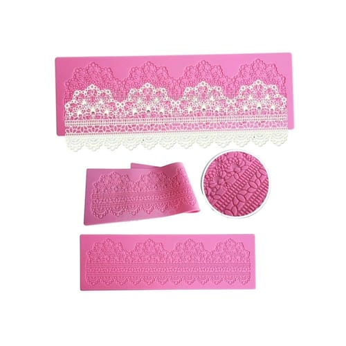 Molde de silicona flexible, ideal para decoración realizar Encaje comestible.Consta de 1 pieza en silicona de calidad alimentaria.Puede adecuarse a la elaboración destas figuras en pasta de goma, fondant, chocolate, gelatina, gelatina, gelado, artesanía, y otras manualidades.Medidas del molde: 40cm x 13cm. Medidas da figura: 11 cm x 36,5 cm Hecho en material antiaderente y fácil de limpiar.Nuestras siliconas son hechas en material respeitoso con el medio ambiente, bajo en carbono y reciclable. Puede resistir a temperaturas entre -40 °C y 230 °C. Antiaderente, Fácil de usar, desmoldar y lavar: El producto es resistente al lavavajillto No entanto, é recomendável lavar apenas com sabão e água abundante para prolongar seu uso e vida útil. Sua flexibilidade permite uma limpeza mais cómoda.A cor do produto pode ter leves variações de acordo com a disponibilidade da mesma.Debido à medição manual, pode existir uma diferença de 1-5 mm em comparação com as medidas observadas na imagem.As seguintes instruções de uso podem ser úteis para você: 1. Lava e seca bien el molde de silicona y espolvoréalo ligeramente con harina de maíz para facilitar sua liberação.2. Coloque o molde em uma superfície plana firme. Pressione a massa uniformemente e firmemente no molde sem sobrecargar.3. Enrole a massa na forma com um rolo. Certifique-se de que todas as áreas estejam cheias e que a base seja plana.4. Corte qualquer excesso de pasta de los bordes com uma espátula.5. Gire el molde y suelte la pasta suavemente sobre una superficie limpia.Ten en cuenta:Las herramientas utilizadas con productos alimenticios deben mantenerse separadas de las s con materiales no alimentarios.