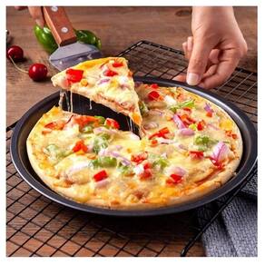 DESCRIÇÃO DO PRODUTO Molde Para Pizzas de 29cm - Bandeja antiaderente - Ideal para pizza - Molde para hornear - Não contém substâncias nocivas. - Superficie lisa - Resistencia a altas temperaturas, alta dureza, não se oxida. - Material de alta durabilidade - Diâmetro: 29 - Altura: 2cm - 1 unidade SOMOS ARCASHOPPING