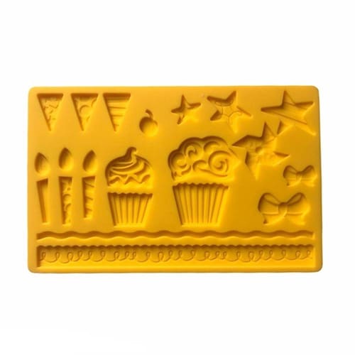 Medida da peça pronta: Velas variam de: 5,2*1,0; Cupcake grande parte de baixo: 3,0*3,8; Cupacake grande parte de cima: 3,0*4,9cm; Cupcake menor parte de baixo: 2,8*3,0cm; Cupacake parte e cima: 2,8*3,2cm; Laço maior: 2,2*4,0cm; Laço menor: 1,5*2,4cm; Estrelas variam de:2,5*3,6cm; Cata-vento: 5,0*3,0cm; Cereja: 1,91,3cm; Chapéus; 2,6*2,0cm; Fita larga: 1,5*18,2cm; Fita fina:0,5mm*18,2cm;