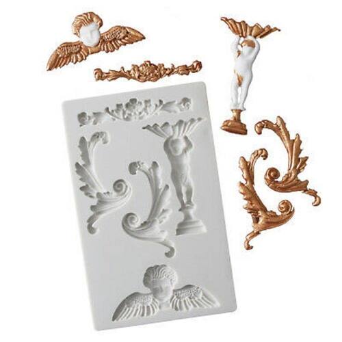Medida da peça pronta:Anjo - 4*8,8cm; Escultura - 9,1*5cm; Arabescos - 8*4cm; Arabesco menor - 1,7*9,3cm.
