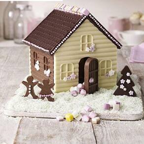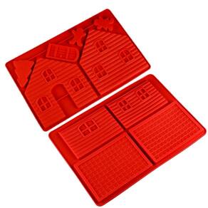 Molde de silicone Christmas Ginger House composto por 2 placas de silicone com orifícios para fazer as partes de uma casa de gengibre. Pode ser utilizado para fazer uma casinha de biscoitos ou também chocolate. Além disso, inclui formas de árvores, acessórios de gengibre... O molde de silicone é adequado para lava-louças, microondas, forno e freezer, suportando temperaturas entre -40° C e 230° C. As paredes laterais medem: 36x25x1,3 cm. Medidas das paredes frontais: 34x21,7x1,3 cm.