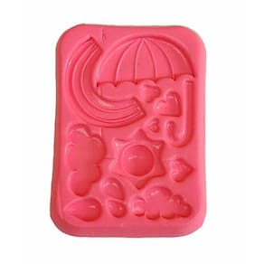 Medida da peça pronta: Nuvem Maior - 4,3cm; Nuvem Menor - 3,5cm; Arco-Íris - 6cm; Guarda-Chuva - 6,5*6,2c; Gotas - Variam de 1,5 a 3cm.