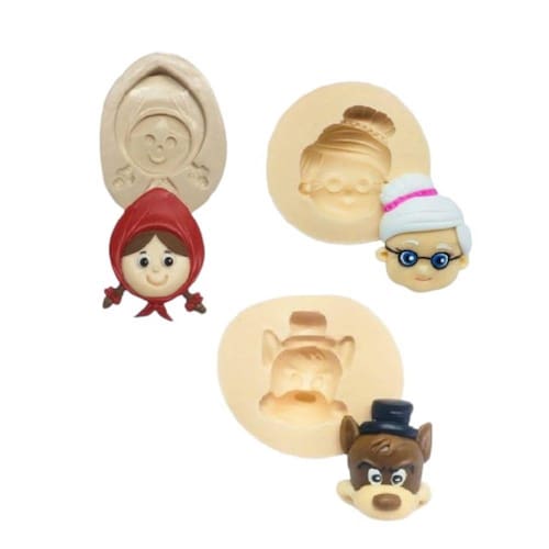 Medida do molde: Lobo - 5cm; Chapeuzinho - 6,5*4,7cm; Vovó - 6*5cm