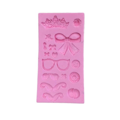 Medida da peça pronta: Laço maior - 2,5*3cm; Laço menor - 0,6mm; Coroa - 1,5*3,4cm; Óculos maior - 1,5*3,4cm; Óculos menor - 0,8*2cm; Bigode maior - 1*3,1cm; Bigode menor - 0,8*2,4cm.