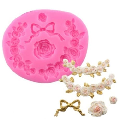 Medida da peça pronta: Laço - 2,5*5cm; Rosa maior - 2,5cm; Rosa pequena - 1cm; Arabesco - 7,5*2cm.