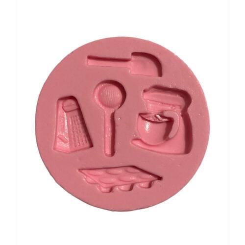 Medida da peça pronta: Espátula: 0,9mm*2,5cm; Colher de pau: 2,5*1,2cm; Ralador: 2,0*1,5cm; Batedeira: 2,2*1,7cm; Forma cupcakes: 1,0*2,0cm;