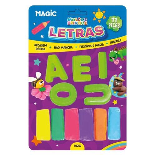 O Molde e brinque 11 peças - letras: é um conjunto educativo e divertido que apresenta peças em forma de letras, ideal para crianças que estão aprendendo o alfabeto. Cada peça é feita de um material macio e seguro, permitindo que as crianças moldem e brinquem livremente. As letras podem vir em diferentes cores vibrantes, incentivando a identificação e a associação de cores e formas. Marca: Não Informado