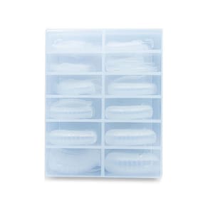 Inclui uma caixa contendo 120 unidades do molde modelo Sorriso com 12 tamanhos diferentes, sendo 10 unidades de cada tamanho.