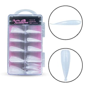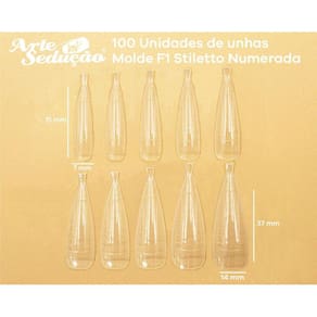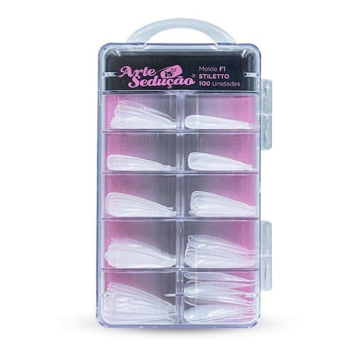 01 - Caixa Acrílica com 100 Unidades de Molde F1 Modelo Stiletto Arte Sedução