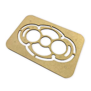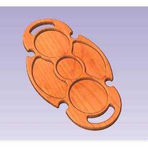 Molde para trabalhar com madeira bruta de diferentes espessuras, ideal para fabricar petisqueiras. Para evitar acidentes, fixe bem o molde na madeira e na bancada. Utilize uma fresa de 12 a 13mm de diâmetro, com topo reto, e acompanhe o curso do molde com uma guia copiadora da tupia ou com uma fresa com rolamento na haste.