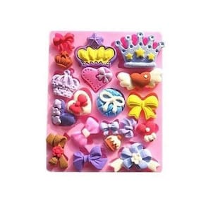 Molde Silicone Mix Coroas E Laços - Gmezn209 Rosa Contém: 01 Molde Silicone Mix Coroas e Laços - GMEZN209 - Rosa Molde de silicone para artesanato e confeitaria. Resistente e flexível, ideal para auxiliar nos trabalhos de artesanato com biscuit e resina e para confeitaria com pasta americana, pasta de leite em pó ou chocolate. Molde produzido na cor rosa ou lilás Novo, feito sob encomenda. Fácil de utilizar e de limpar. Reutilizável e antiaderente. Suporta temperaturas de-40°C a 210°C Altura: 9.00 cm Largura: 1.00 cm Comprimento: 7.00 cm
