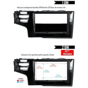 Compatível com os modelos Honda Wr-V de 2017 a 2021, essa moldura possui acessórios de instalação e fixação, como aro intermediário e suportes laterais. Além disso, ela é compatível tanto com o padrão chinês quanto com o padrão japonês, com medidas de até 18x10 cm para o aparelho.