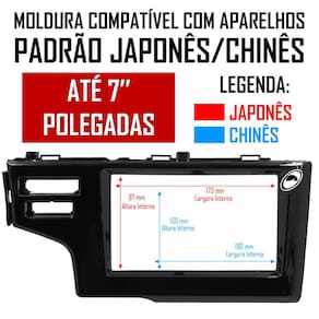- Moldura compatível com centrais multimídias e MP5 de até 7" Polegadas Padrão Chinês e Japonês;