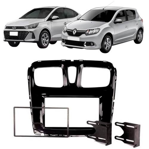 Moldura 2 Din Sandero e Logan 2015 à 2024 Preta Painel Central Multimidia Mp5 Som Dvd Expex Epx 481