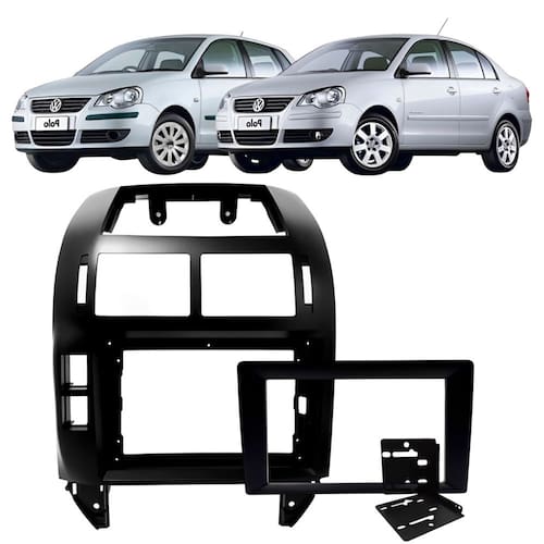 Moldura 9 e 7 Polegadas 2 Din Polo Hatch Sedan 2003 à 2011 Preta Painel Central Multimidia