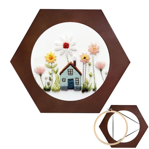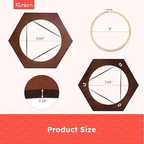 XEmbro Moldura de madeira para bordado de 20 cm, moldura hexagonal de madeira com aro de bordado de 20 cm para moldura de argola de ponto cruz, projetos de artesanato DIY e enfeites de Natal Especificações: Material: madeira Cor: Nogueira Conteúdo da embalagem: 1 moldura hexagonal de 20 cm. 1 argola de bordado de 20 cm. - Design hexagonal exclusivo: nossa moldura de bordado hexagonal de 20 cm oferece uma forma distinta e atraente, adicionando um toque de criatividade aos seus projetos de bordado. Destaque-se da multidão com esta moldura exclusiva que se adapta perfeitamente ao seu aro de bordado de 20 cm - Madeira premium: feita de madeira de alta qualidade, esta moldura de aro de bordado é feita para durar. A beleza natural do grão de nogueira adiciona um toque elegante e luxuoso à sua experiência de costura - Seguro e estável: projetado para segurar com segurança seu aro de bordado de 20 cm, esta moldura de exibição de madeira garante estabilidade ao exibir seus artesanatos de bordado - Fácil montagem e desmontagem: nossa moldura hexagonal de 20 cm para exibição é projetada para conveniência. Possui uma corda elástica ajustável que facilita a montagem e a desmontagem, permitindo trocas de argola rápidas e sem esforço - Versátil e funcional: a moldura de parede bordada pode ser usada não apenas para exibir projetos de ponto cruz acabados, mas também para exibir outros tipos de bordado, bordado e até mesmo obras de arte. Eleve seu jogo de bordado com esta moldura versátil e funcional