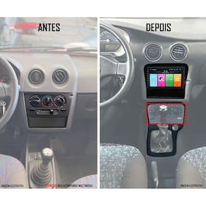ITENS INCLUSOS: - 1 Moldura de Painel 2 Din; - 1 Console; - 2 Suportes Fixação; - 8 Parafusos; - 1 Aro Intermediário; - 2 Travas do Controle de Ar.