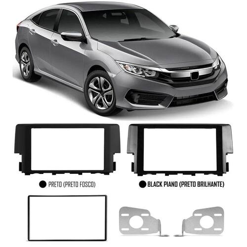 Moldura De Painel 2 Din Honda Civic G10 2017 2018 2019 2020 2021 2022 - Cor: Preto