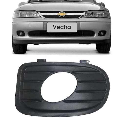Especificação Técnica: • Fabricado em Plástico Resistente • Moldura na Cor Preta • Pode ser Pintada na Cor do Veículo • Com Furo para Farol de Milha • Para Vectra Milenium e Elite • Encaixe Sob Medida • Acabamento Impecável
