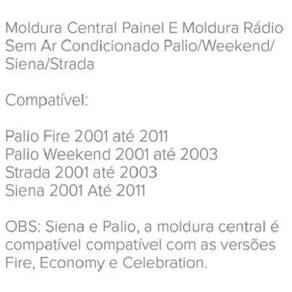 Moldura painel central palio fiat strada 2001 a 2003 sem ar