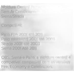 Descrição do produto Moldura painel central palio fiat strada 2001 a 2003 sem ar Mais informações Marca: 67781 Descrição completa Descrição do produto Moldura painel central palio fiat strada 2001 a 2003 sem ar Mais informações Marca: 67781 Descrição completa Moldura painel central palio fiat strada 2001 a 2003 sem ar moldura central painel e moldura rádio sem ar condicionado palio/weekend/siena/stradacompatível:palio fire 2001 até 2011palio weekend 2001 até 2003strada 2001 até 2003siena 2001 até 2011obs: siena e palio, a moldura central é compatível compatível com as versões fire, economy e celebration.Conteúdo da embalagem: de 3 mesesvalor unitárioespecificação técnica: Moldura central sem ar condicionado Fabricado em plástico resistente Moldura na cor cinza Fácil instalação realizada através de encaixes conteúdo da embalagem: 01 moldura central e moldura radioimportante: de 3 meses. Valor unitário. Mps-0053 / mps0045 Agradecemos a sua visita Agradecemos a sua visita Marca: Não Informado Ean: 7800000026153