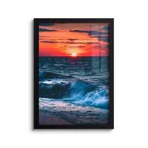 Quadro Decorativo Por Do Sol Maré Mar Moldura E Vidro