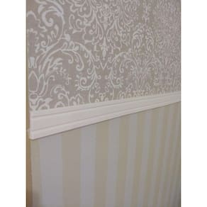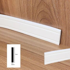 Remova cuidadosamente a proteção da fita dupla face. Alinhe o rodapé na posição desejada na parede e pressione firmemente. Para uma fixação mais eficiente, utilize os punhos ou um martelinho de borracha para bater em toda a extensão da peça, garantindo assim que o rodapé esteja completamente aderido à superfície.