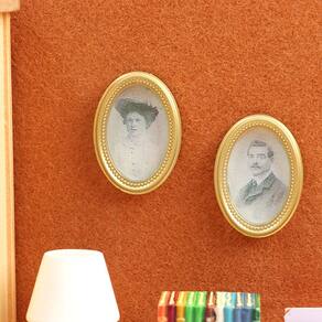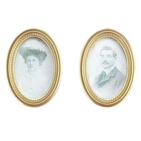 Tamanho: comprimento 3,8 x largura 2,7 x altura 0,6 cm Material: plástico Peso: 5 g Conjunto de 2 molduras de parede em miniatura com um design vintage de retrato de casal, perfeitas para adicionar detalhes decorativos realistas às cenas de móveis de casas de bonecas. Projetado com molduras ovais em tom dourado, trazendo um toque de elegância e estilo antigo a qualquer cenário de brinquedo de mini teatro. Feita de material plástico durável, cada moldura mede 3,8 x 2,7 x 0,6 cm e pesa cerca de 5 g, tornando-a leve e resistente para colocação em cenas. Brinquedo que não seja infantil, mantenha-o longe do alcance de bebês e crianças pequenas para evitar riscos de asfixia; este produto é destinado apenas para brincadeiras de fingir e exibir objetos decorativos. Acessório de modelo, não para uso real; compatibilidade de tamanho recomendado: casas de bonecas e bonecas em escala 1/12 para criar uma autêntica mini decoração de casa.