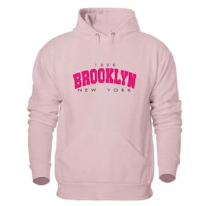 Moletom Agasalho Canguru Flanelado Confortavel Estampa Brooklyn Com Capuz Ajustavel - Rosa - M