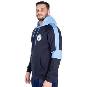 O Moletom Manchester City Canguru foi feito especialmente para aconchegar o torcedor do City nos dias mais frios. Confeccionada em tecido de poliéster e algodão, garante excelente maciez e conforto. Além disso, esta peça apresenta dois bolsos frontais no estilo canguru, forro interno, capuz, escudo do clube inglês bordado ao esquerdo do peito e design predominante na cor azul marinho com detalhes em azul claro na manga. Aproveite essa chance e adquira agora o seu Moletom Manchester City Canguru!