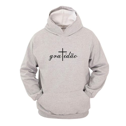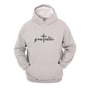 Moletom Masculino Canguru Estampa Gratidão com Capuz - Cinza - G
