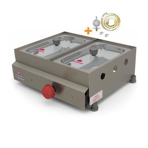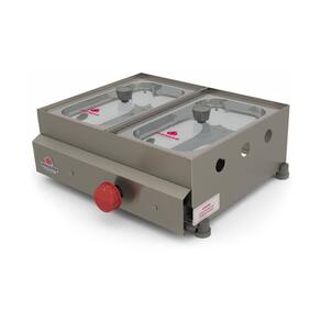 Descrição técnica:- estrutura em aço inoxidável;- 2 cubas; 5cm a x 26cm l x 16cm p cada .- 1 queimador posicionado abaixo da uma das cubas, não tem banho maria.- tampos de vidro- pezinho borracha tachos m-400.- gaveta pr-02 g completa- trabalha á gás glp .Baixa pressão- consumo médio: 0,100 kg/h- peso líquido: 4,2 kg- medidas totais: 16cm a x 40cm l x 35cm p- medidas internas cada cuba: 5cm a x 26cm l x 16cm p- medidas embalagem: 18cm a x 41cm l x 36cm p Marca: Não Informado Ean: 7890100022698
