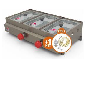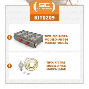 Componentes do Kit: 1 - Molheira Salsicheira PR-03 GN 3 cubas Progás baixa pressão 1 - Kit gás 1kg