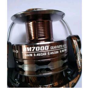 Especificações Técnicas: Carretel: Aço Capacidade Peixe: até 30lbs Peso: 320 g Rolamentos: 13 Tamanho LxAxC : 15x15x15cm Modelo: HM-7000 Ratio: 4.9.1 Capacidade Linha: 0.40mm/240m, 0.45mm/200m, 0.50mm/140m Marca: DEBAO Origem: China