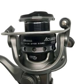 - Marca: Okuma - Modelo: Acuador ACU-1000A - Tamanho: 1000A - Tipo: Molinete (spinning) - Quantidade de rolamentos: 3BB + 1RB (aço inoxidável) - Relação de recolhimento: 4.8:1 - Recolhimento por volta: 61 cm - Drag máximo: 5 kg (11 lb) - Peso aproximado: 204 g - Material do corpo: Grafite/composto resistente à corrosão - Material do carretel: Alumínio usinado anodizado com borda LCS - Material da manivela: Metal - Orientação da manivela: Ambidestra - Sistema anti-reverso: Quick-Set - Engrenagem: Pinhão de latão usinado - Tecnologia do rotor: Cyclonic Flow Rotor (CFR) - Sistema de balanceamento: RESII - Indicação de uso: Pesca em água doce e salgada