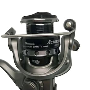Especificações: - Marca: Okuma - Modelo: Acuador ACU-2500A - Tamanho: 2500A - Tipo: Molinete (spinning) - Quantidade de rolamentos: 3BB + 1RB (aço inoxidável) - Relação de recolhimento: 5.0:1 - Recolhimento por volta: 71 cm - Drag máximo: 7 kg (15 lb) - Peso aproximado: 237 g - Material do corpo: Estrutura, placa lateral e rotor resistentes à corrosão - Material do carretel: Alumínio usinado anodizado em 2 tons com borda LCS - Material da manivela: Metal rígido (ambidestro) - Arruelas de freio: Feltro oleado japonês multi-discos - Sistema anti-reverso: Quick-Set - Engrenagem: Pinhão de latão usinado com precisão - Tecnologia do rotor: Cyclonic Flow Rotor (CFR) - Sistema de balanceamento: RESII - Sistema de rolete: Even Flow Roller System - Indicação de uso: Pesca em água doce e salgada