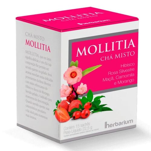 MOLLITIA, que em latim significa delícia, é um chá cuja composição lhe permite ser servido quente ou gelado. Seus aromas mesclam notas delicadas provenientes da Rosa Silvestre com notas refrescantes do Hibisco e doces do Morango. Servido gelado, é indicado para momentos de descontração. Quando servido quente suas características peculiares o faz ideal para momentos mais íntimos.