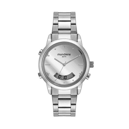 Especificações técnicas do Relógio Mondaine Prata Feminino 32590L0Mvne2: - Marca: Mondaine - Gênero: Feminino - Tipo de mostrador: Analógico e Digital - Tipo de fecho: Dobrável - Cor da caixa: Prata - Cor do mostrador: Prata - Cor da pulseira: Prata - Material da caixa: Metal - Material da pulseira: Aço - Largura da caixa: 4,0 cm - Resistência à água: 5 ATM 50m
