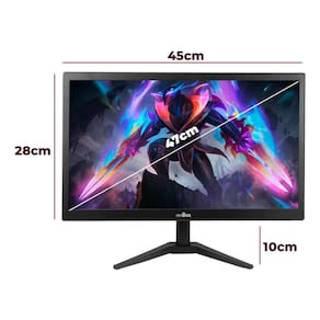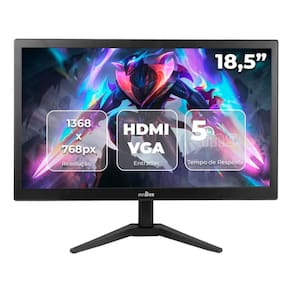 Tela HD com Baixo Consumo: Monitor LED 18.5" (1366x768 16:9) com apenas 18W de potência, tecnologia antirreflexo e filtro de luz azul - ideal para uso prolongado sem alto custo energético
