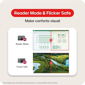 Conta com recursos de conforto visual que reduzem o cansaço durante longos períodos de uso, além de base estável e design discreto que se adapta facilmente a qualquer espaço de trabalho.