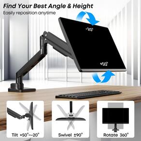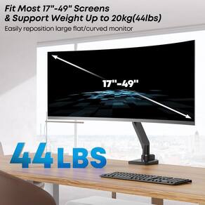 Leve sua experiência de tela grande para o próximo nível com este braço de monitor forte e elegante. - Atualize o suporte de monitor ultrawide: para acompanhar a nova tendência de telas maiores, a iMTKOTW projetou este braço de monitor pesado com mecanismo de inclinação otimizado para segurar com segurança monitores de até 49 polegadas, o que pode proporcionar uma experiência de ajuste mais suave para telas grandes - Rock Solid com maior compatibilidade: este braço de monitor único se encaixa na maioria das telas planas/curvas de 17 polegadas a 49 polegadas com um peso de suporte de 2-20 kg (4,4 a 44 libras) e Padrões VESA 100 x 100 mm e 75 x 75 mm. Verifique a compatibilidade antes de comprar - Design Full Motion: este braço de monitor possui inclinação de 50° para cima e 20° para baixo, rotação de 180°, rotação de 360° e faixa de altura de 20" para excelente flexibilidade, permitindo que você coloque a tela na melhor vista ou eleve o monitor para aliviar a tensão no pescoço e nas costas e otimiza o espaço na mesa - Braço de monitor pneumático: com excelentes recursos, como mecanismo de mola a gás e rolamentos de precisão, monitor iMTKOTW O suporte permite que os usuários ajustem facilmente o monitor à posição ergonômica ideal, além de fornecer de cima para baixo gerenciamento de cabos inferiores - Fácil de montar: manual do usuário passo a passo e kit de hardware organizado para montagem sem complicações. O suporte VESA removível com opções de montagem dupla. As espessuras de mesa necessárias para montagem com braçadeira C e montagem em anel isolante são de 0,47" a 2". A entrega inclui kit de montagem e manual de instruções - Suporte: Se você tiver alguma dúvida sobre o ajuste da tensão da mola e o ajuste do ângulo de inclinação, consulte a FIGURA 4. O iMTKOTW fornecerá atendimento profissional ao cliente antes e depois da compra.