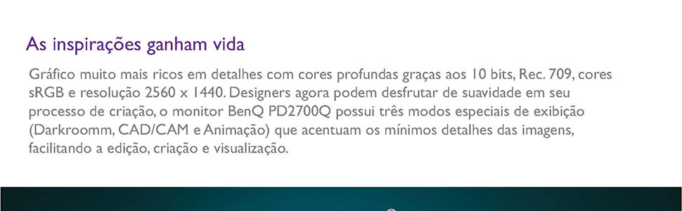 Projetado para atender às crescentes demandas de visualização detalhada e de definição ultra alta, o monitor BenQ PD2700Q possui uma tela QHD de 27 polegadas, construída com a avançada tecnologia IPS, para proporcionar aos profissionais reprodução de cores ultra precisas.