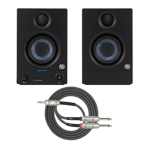 - O pacote inclui: monitor de referência de mídia PreSonus Eris 3.5 com driver de baixa frequência de 3,5 polegadas com interferência de RF e cabo de fuga estéreo TRS de 3,5 mm para TS duplo de 1/4 de polegada