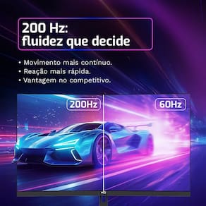Compatível com AMD FreeSync, o monitor elimina cortes e travamentos de imagem, proporcionando uma experiência visual mais estável e fluida. Conta ainda com tecnologias HDR, HDCP, Over Drive (OD) e Low Blue Light, que melhoram o contraste, aumentam a compatibilidade com diferentes dispositivos e reduzem a fadiga ocular em longas sessões de uso.