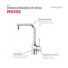 O Monocomando de Mesa para Cozinha Movee da Fabrimar combina design moderno com funcionalidade premium. Com um único comando, oferece controle preciso da temperatura e do fluxo de água, proporcionando praticidade no uso diário. Seu acabamento cromado confere um toque sofisticado e durabilidade ao produto. O design ergonômico e a alta qualidade de construção tornam esse monocomando uma escolha elegante e eficiente para a sua cozinha. Experimente a praticidade e o estilo do Monocomando de Mesa Movee da Fabrimar em sua rotina culinária.