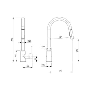 Monocomando para Cozinha de Mesa Bica Extraível U" com 2 Funções Prática Celite Cromado
